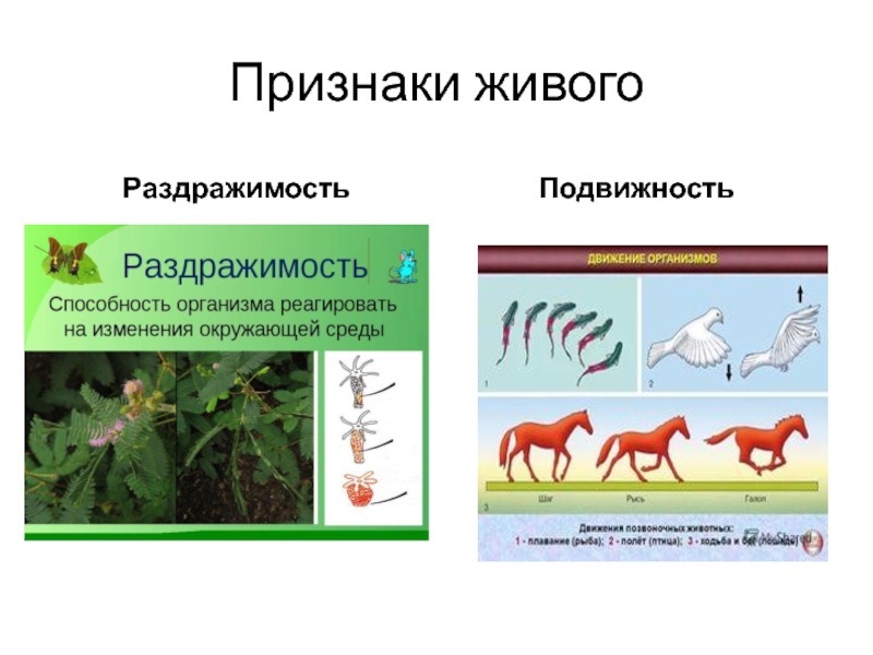 Признаки живогоРаздражимостьПодвижность