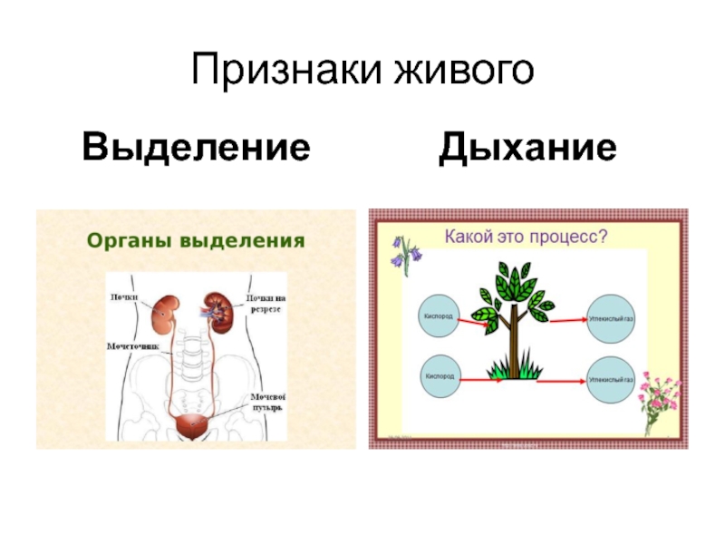 Признаки живогоВыделениеДыхание
