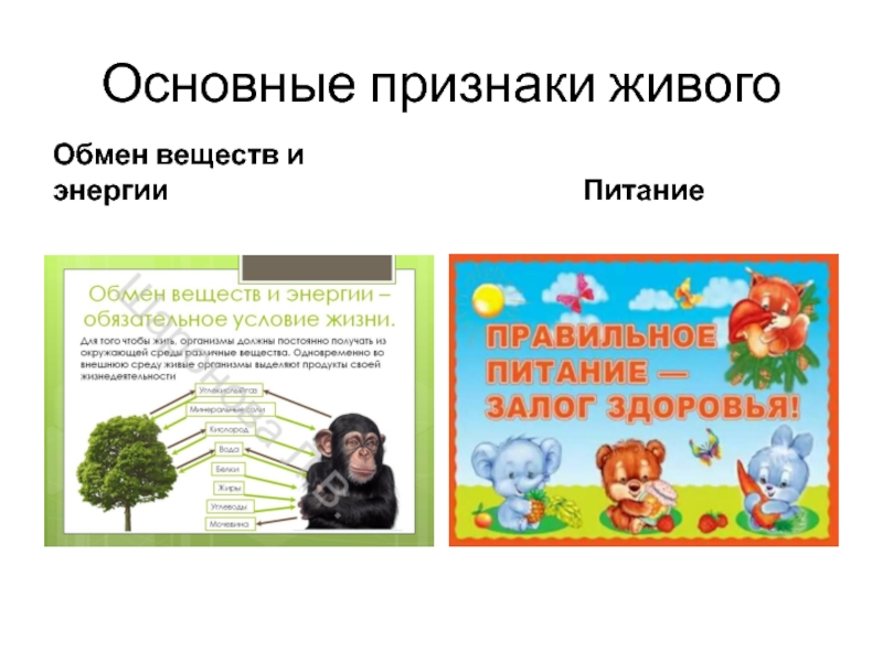 Основные признаки живого Обмен веществ и энергииПитание
