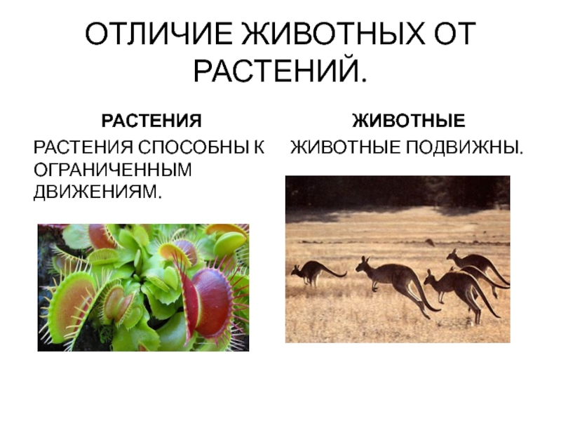 Слайд 13ОТЛИЧИЕ ЖИВОТНЫХ ОТ РАСТЕНИЙ.