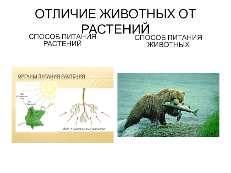 ОТЛИЧИЕ ЖИВОТНЫХ ОТ РАСТЕНИЙСПОСОБ ПИТАНИЯ РАСТЕНИЙСПОСОБ ПИТАНИЯ ЖИВОТНЫХ