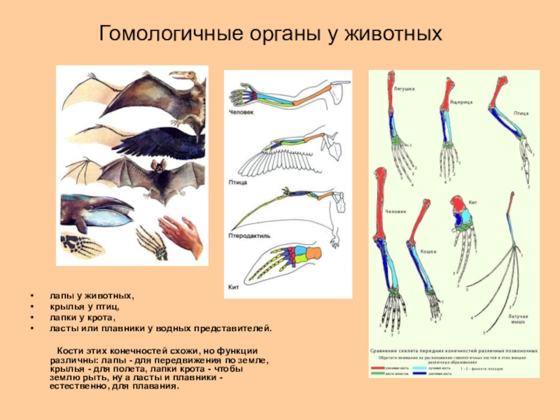 Крылья птерозавра(1) летучей мыши (2) и птицы (3)