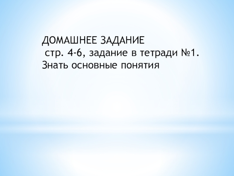 ДОМАШНЕЕ ЗАДАНИЕ стр. 4-6, задание в тетради №1.Знать основные понятия