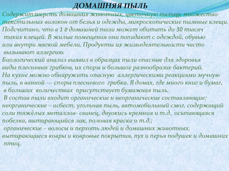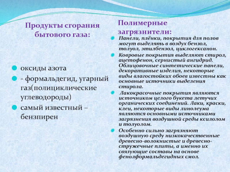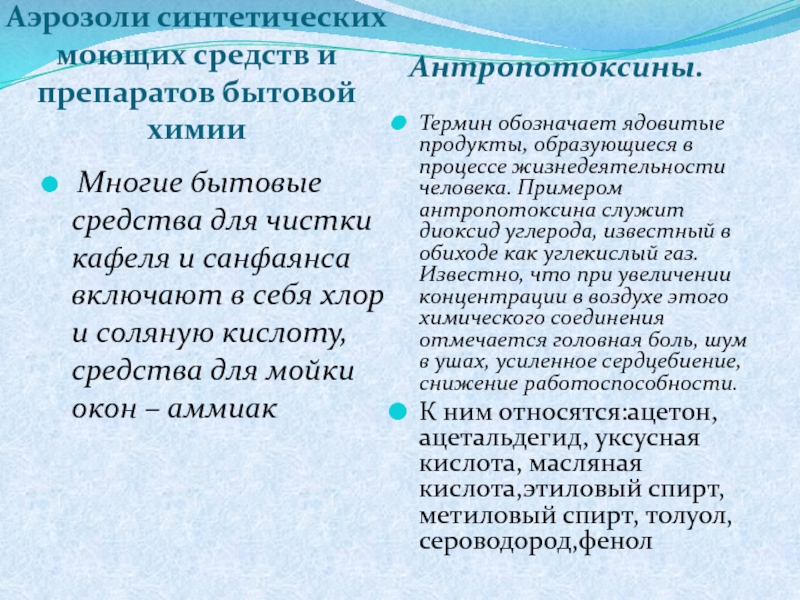Комфортных условий для выполнения хозяйственно-бытовых функций семьи и воспитания детейаэрозоли синтетических моющих средств и препаратов бытовой химии