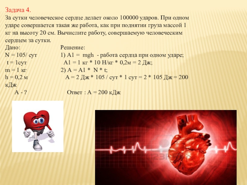 Задача.Во время тяжёлой физической работы сердце человека сокращается до 150