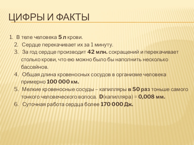 3. За год сердце производит 42 млн. сокращений и перекачивает