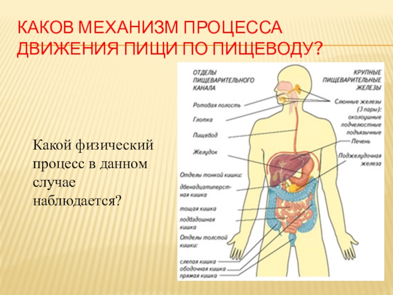 Слайд 19Каков механизм процесса движения пищи по пищеводу?