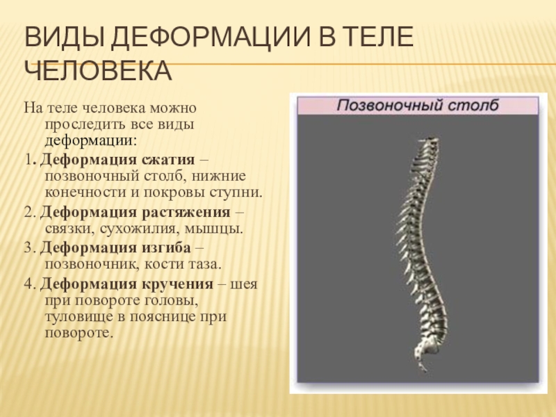 Слайд 24Виды деформации в теле человека
