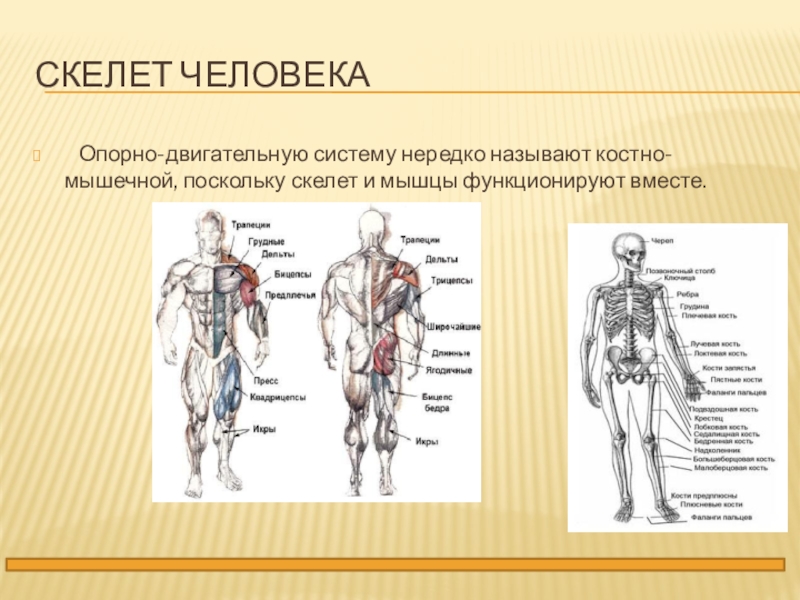Опорно-двигательную систему нередко называют костно-мышечной, поскольку скелет и