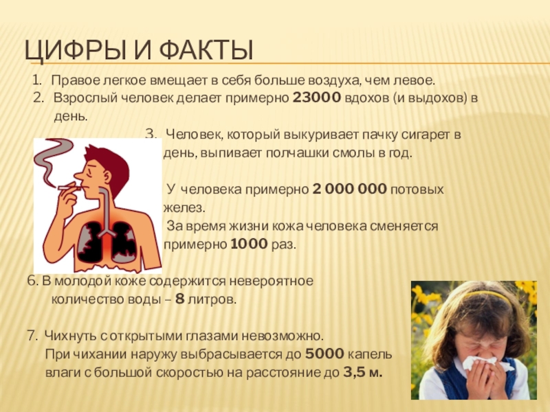 2. Взрослый человек делает примерно 23000 вдохов (и выдохов) в