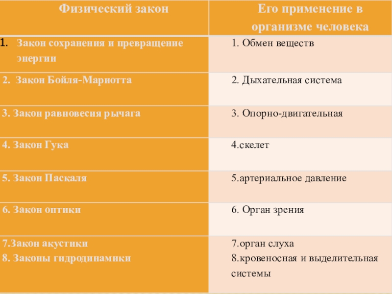 Слайд 1 Физические законы в человеческом организме