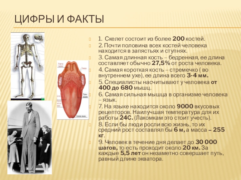 8. Если бы люди росли всю жизнь, то их средний рост составлял бы 6 м, а масса – 255 кг.