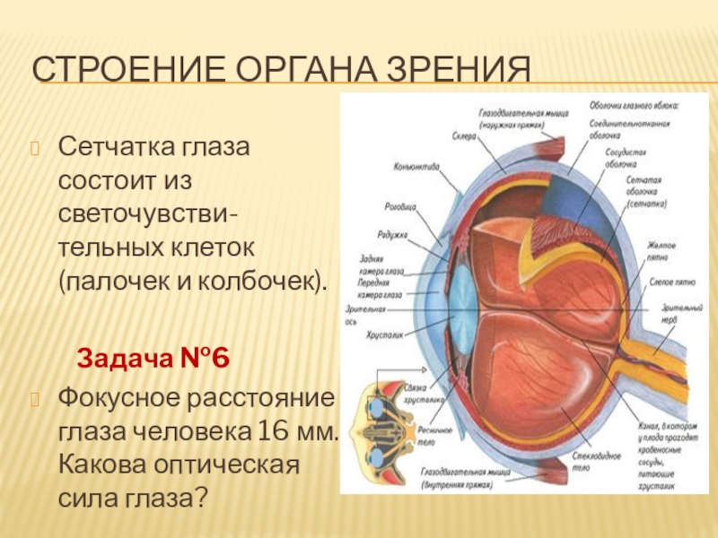 Фокусное расстояние глаза человека 16 мм. Какова оптическая сила глаза?