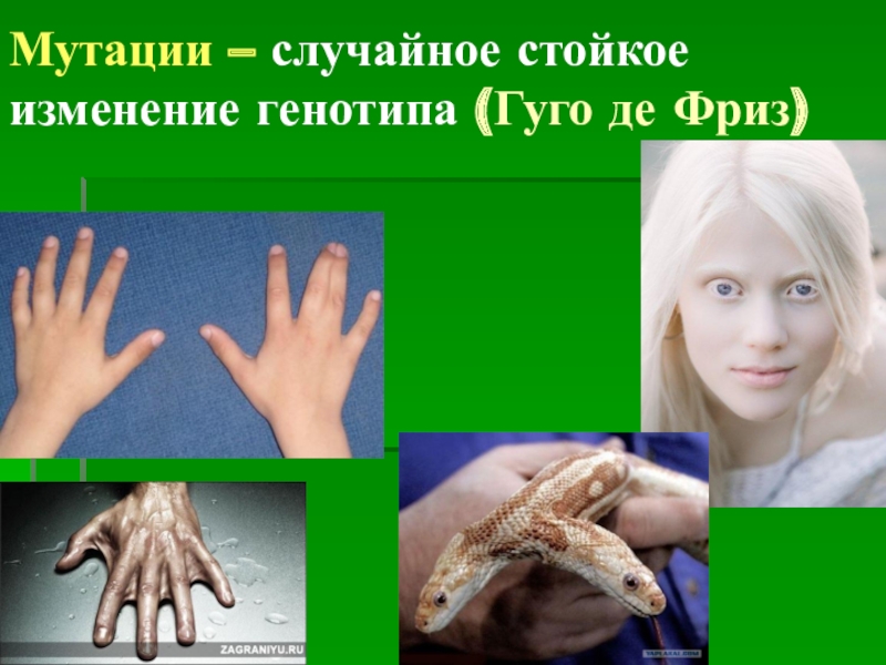 Слайд 13Мутации – случайное стойкое изменение генотипа (Гуго де Фриз)