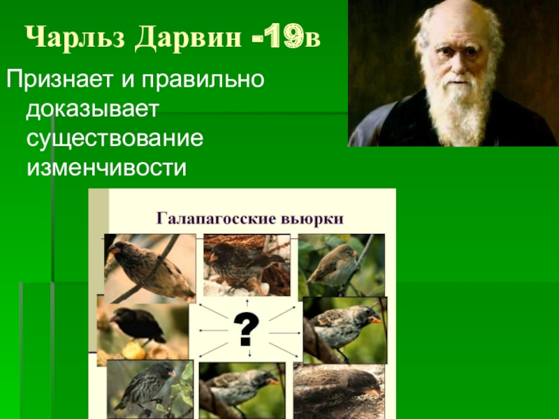Чарльз Дарвин -19вПризнает и правильно доказывает существование изменчивости