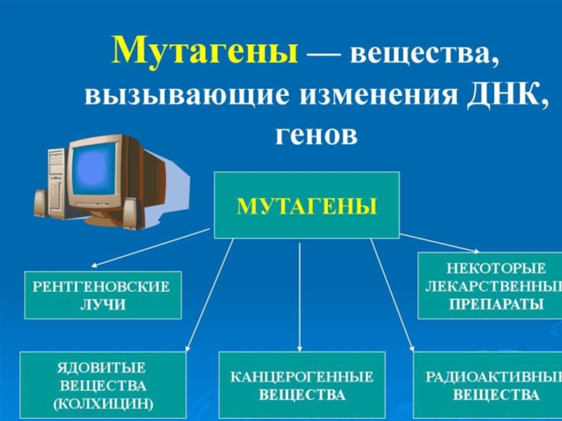 Слайд 19Мутагены – факторы среды, вызывающие мутации