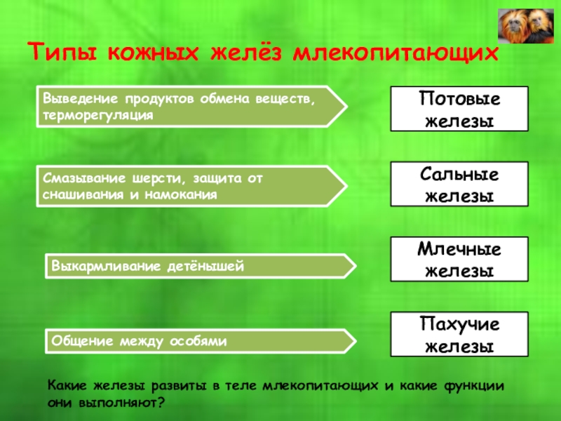 Какие железы развиты в теле млекопитающих и какие функции они выполняют?