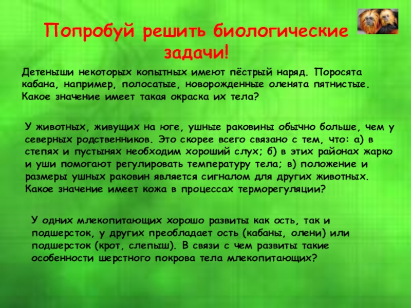 У одних млекопитающих хорошо развиты как ость, так и подшерсток, у других преобладает ость (кабаны, олени) или подшерсток (крот, слепыш). В связи с чем развиты такие особенности шерстного покрова тела млекопитающих?