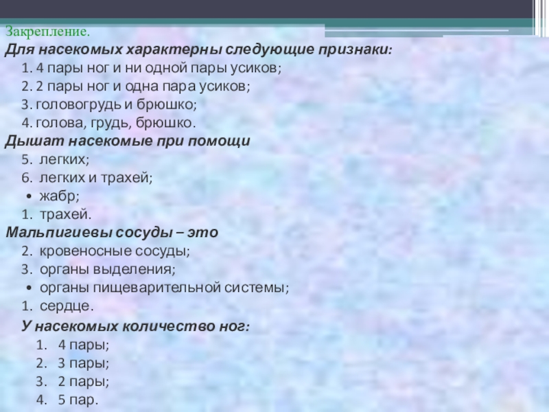 У насекомых количество ног: