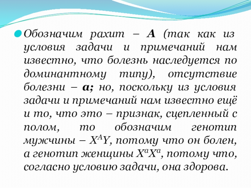 Слайд 13Обозначим рахит – А (так как из условия задачи и примечаний