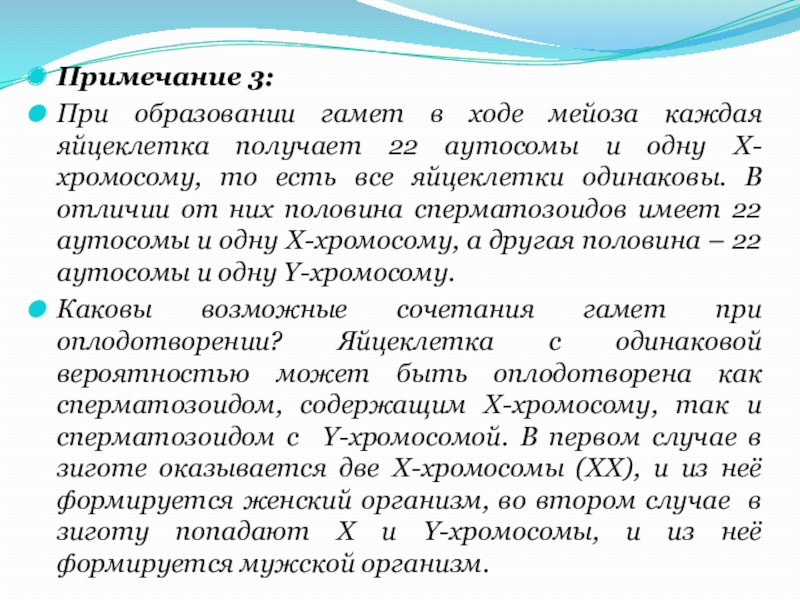При образовании гамет в ходе мейоза каждая яйцеклетка получает 22