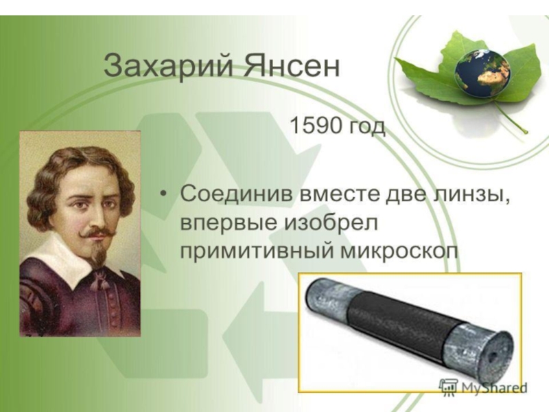 Слайд 6Первый микроскоп в мире был изобретен в конце XVI — начале