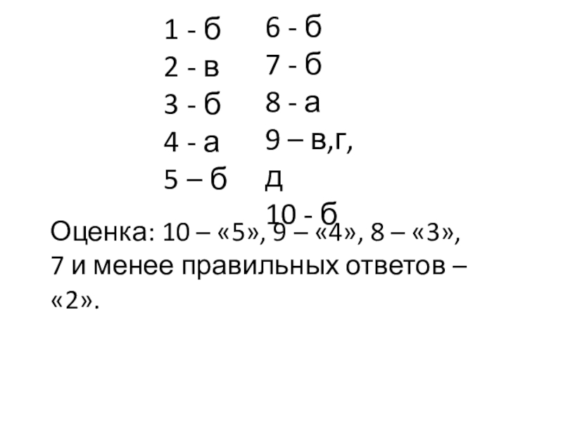 Оценка: 10 – «5», 9 – «4», 8 – «3»,