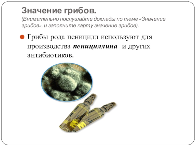 Грибы рода пеницилл используют для производства пенициллина и других антибиотиков.