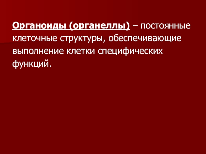 Органоиды (органеллы) – постоянныеклеточные структуры, обеспечивающиевыполнение клетки специфическихфункций.