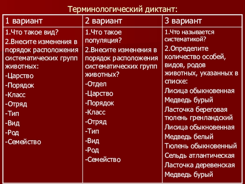Терминологический диктант: