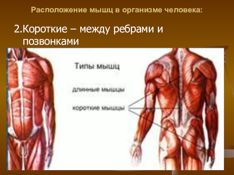 Расположение мышц в организме человека:2.Короткие – между ребрами и позвонками