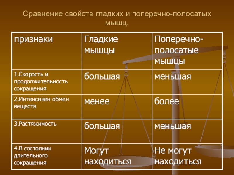 Сравнение свойств гладких и поперечно-полосатых мышц.