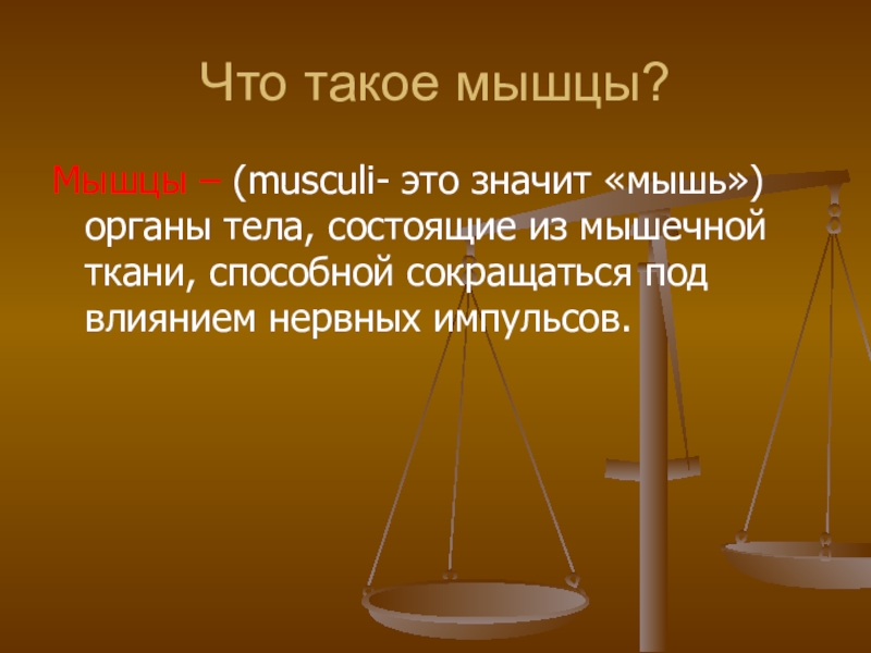 Мышцы – (musculi- это значит «мышь») органы тела, состоящие