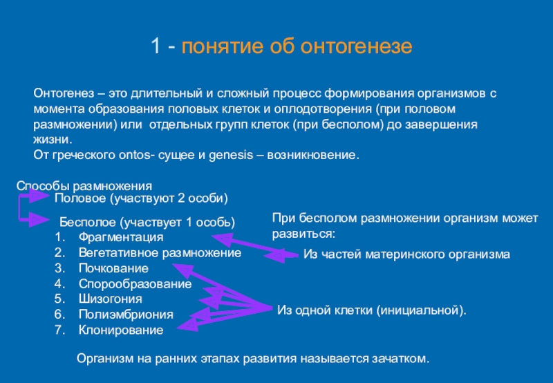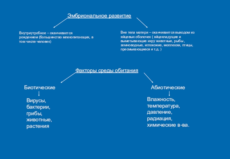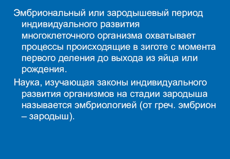 Многоклеточные животные имеют разный уровень сложности организации; могут развиваться в утробе и вне тела матери , но у преобладающего большинства эмбриональный период протекает сходным образом и состоит из трех периодов : дробления, гаструляции и органогенеза.