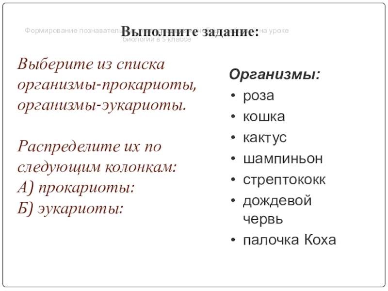 Выберите из списка организмы-прокариоты, организмы-эукариоты.