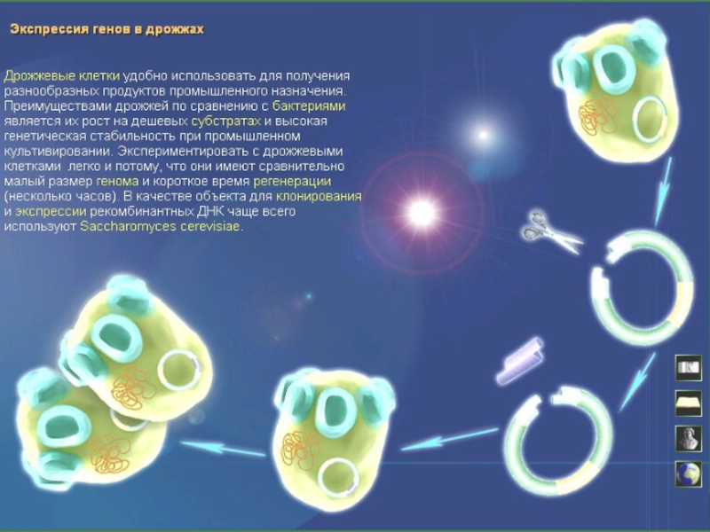 кг. белка, а 500кг.растений сои продуцируют за тот же срок 5 кг. белка, равная же масса дрожжей способна выработать в биореакторе за сутки 50 тонн белка, что в 100 раз превышает их собственную массу и равно массе 5 взрослых слонов).