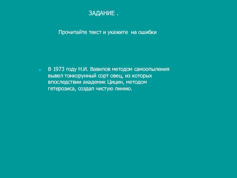 Продолжить развитие познавательного интереса у старшеклассников к изучению проблем современной селекции.