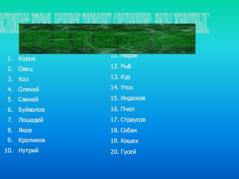 Повторить материал и проконтролировать знания учащихся по теме «селекция животных»