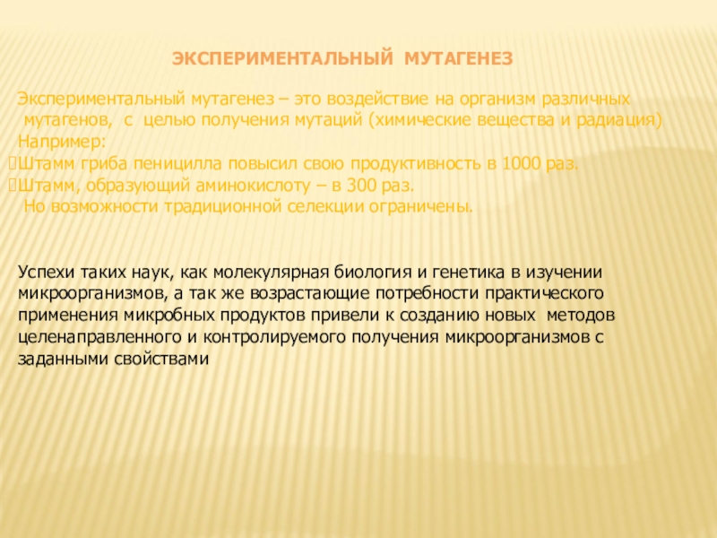 Слайд 24ЭКСПЕРИМЕНТАЛЬНЫЙ МУТАГЕНЕЗ