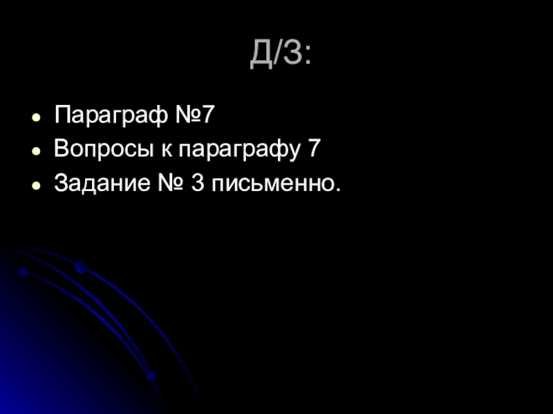 Д/З:Параграф №7Вопросы к параграфу 7Задание № 3 письменно.