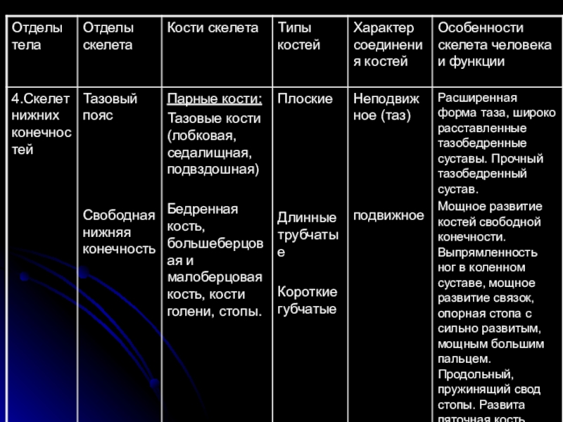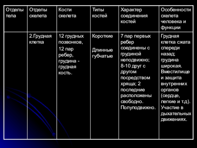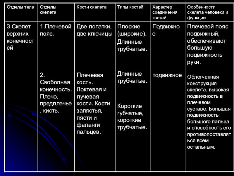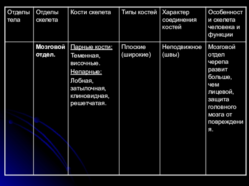 Используя текст учебника заполните таблицу: «Скелет человека».