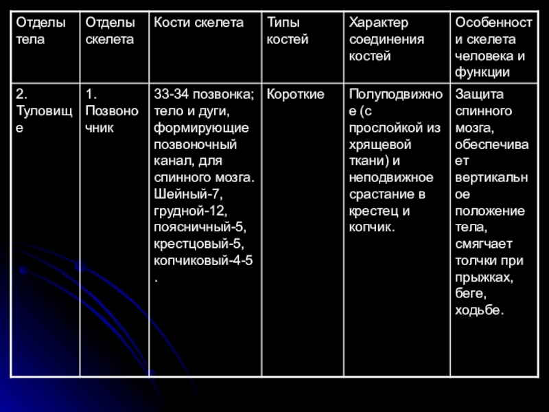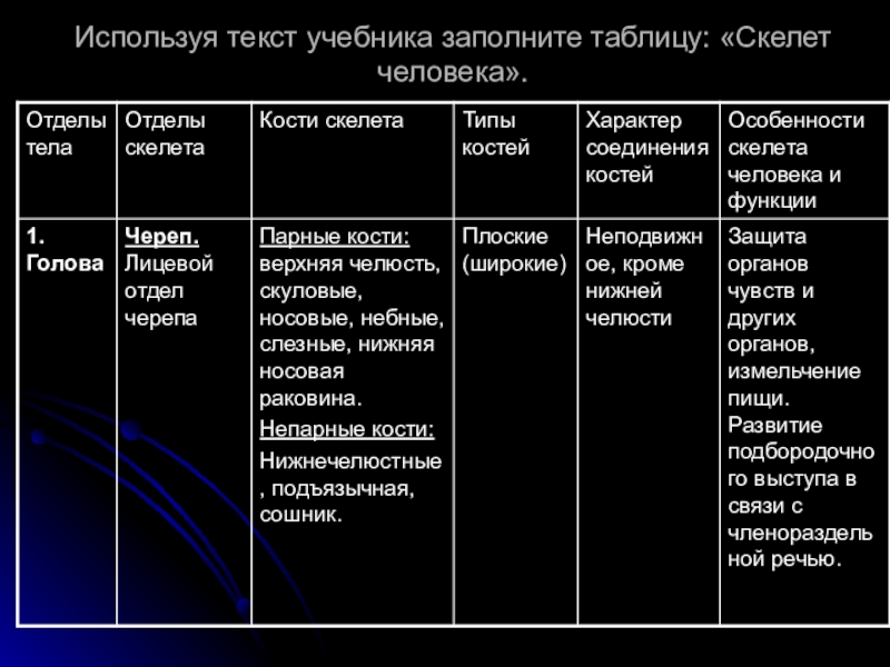 Слайд 5Используя текст учебника заполните таблицу: «Скелет человека».