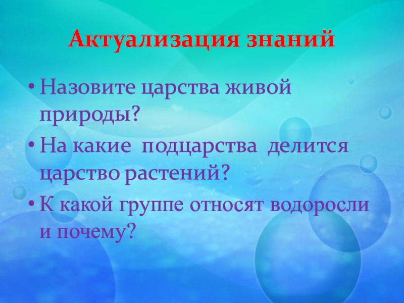 Слайд 1Урок-обобщение по теме: «Водоросли».