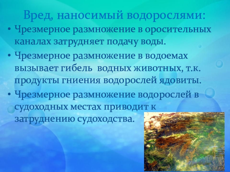 Слайд 24Вред, наносимый водорослями: