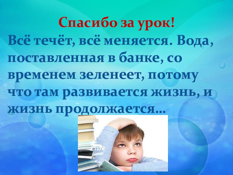 Всё течёт, всё меняется. Вода, поставленная в банке, со