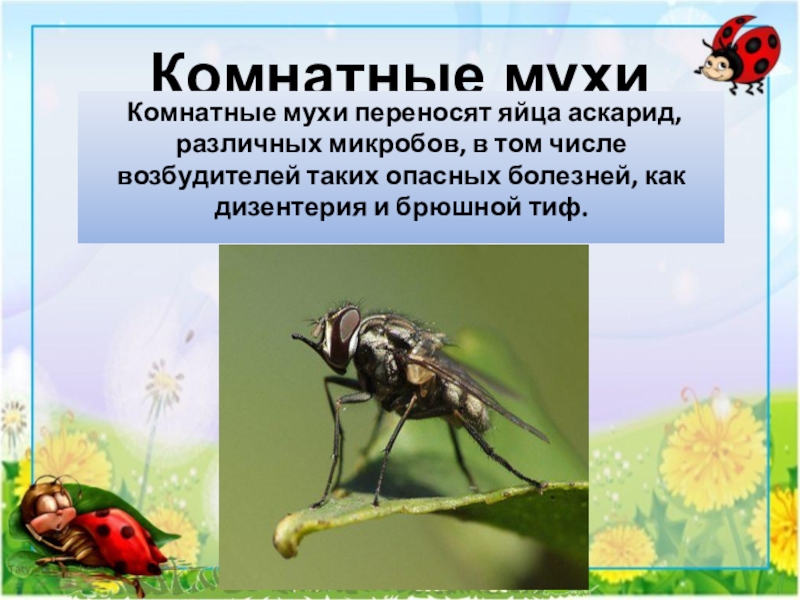 Комнатные мухи переносят яйца аскарид, различных микробов, в том