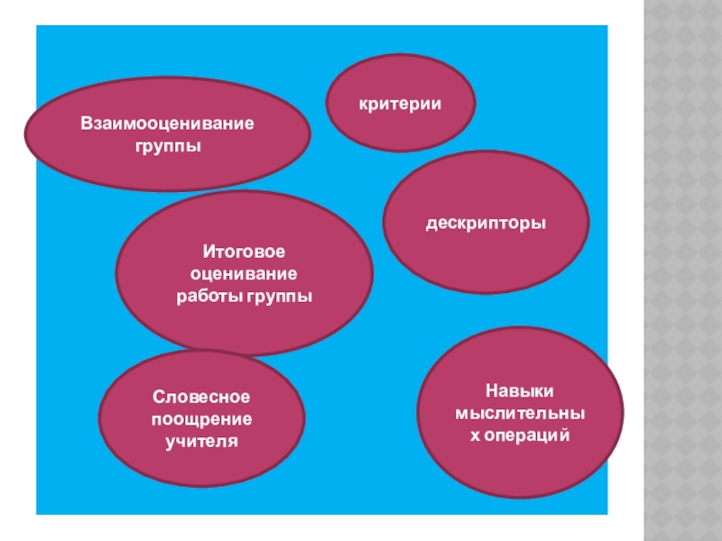 Взаимооценивание группыдескрипторыИтоговое оценивание работы группыНавыки мыслительных операцийкритерииСловесное поощрение учителя
