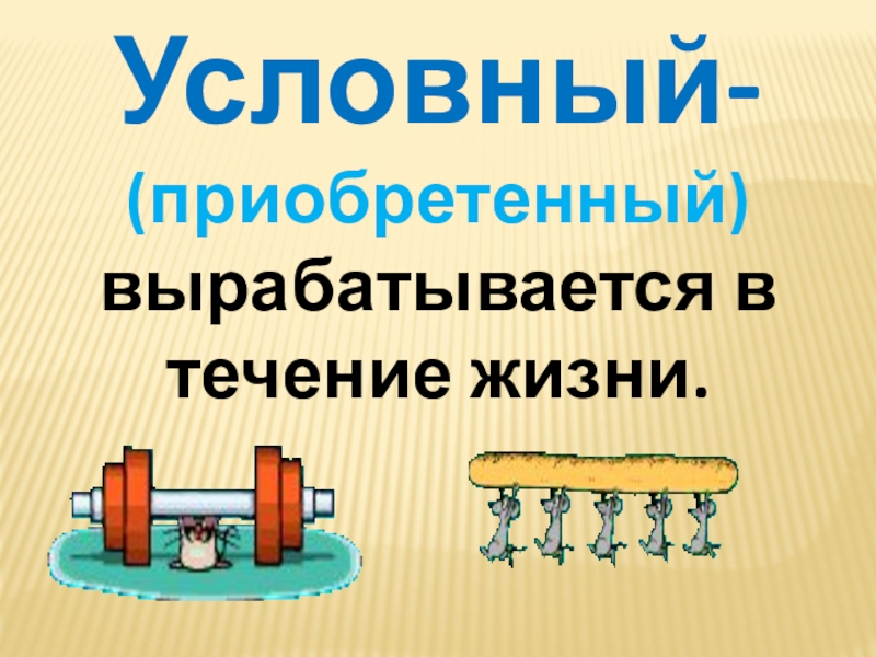 Условный-(приобретенный) вырабатывается в течение жизни.