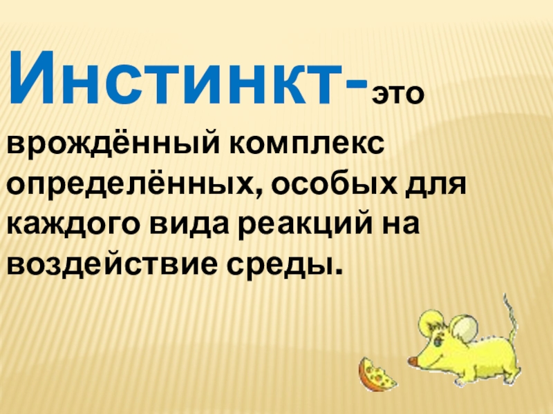 Слайд 8Инстинкт-это врождённый комплекс определённых, особых для каждого вида реакций на воздействие