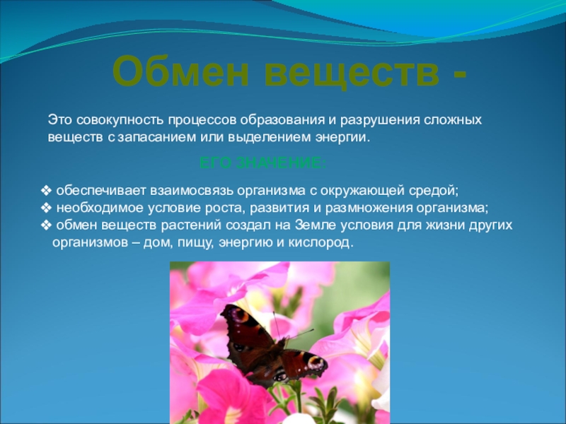 обмен веществ растений создал на Земле условия для жизни других организмов – дом, пищу, энергию и кислород.